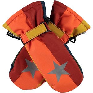 Waterproof, breathable mittens with 3M™ Thinsulate™ insulation. They are in a rainbow print and have star reflectors on top of the hand. They have elastic and adjustable velcro at the wrists. The outer fabric is 51% recycled and made of recycled polyester. The mittens have a water resistant, PFC-free surface treatment (Does not contain, e.g. PFOS, PFOA, etc). Water coloumn pressure: 10.000 mm and breathable: 8.000 g/m2/24hr.