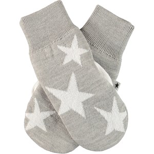 Knit mittens in grey with white stars.