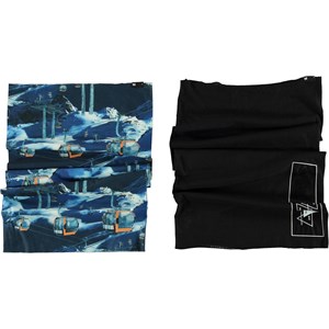 2 gaitors that can be used in many different ways, all year long. One is in blue with a ski lift print and the other is black. Use them around the neck or pull them up so they cover the ears.