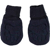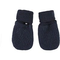 Dark blue baby mittens in 100% Merino wool with a rib at the wrists.