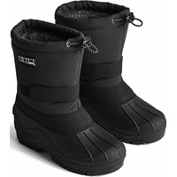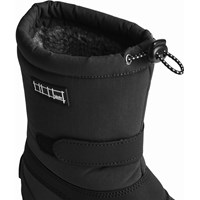 Black winter boots in functional polyester with an adjustable closure at the legs. They have soft rubber soles that continue around the foot. The boots' outer material is 59% recycled and made of recycled polyester. Both the sole and shaft are waterproof. The boots have an inner, removable sock that makes the boots perfect for cold as well as moderate days. This product has a water resistant, PFC-free surface treatment (Does not contain, e.g. PFOS, PFOA, etc). Water column pressure: 10.000 mm. Breathable: 8.000 g/m2/24hr.