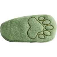 Green baby booties in soft fleece made from 100% merino wool. The booties feature snug ribbed cuffs with folded edges at the ankles and a cute embroidered paw motif under the foot.