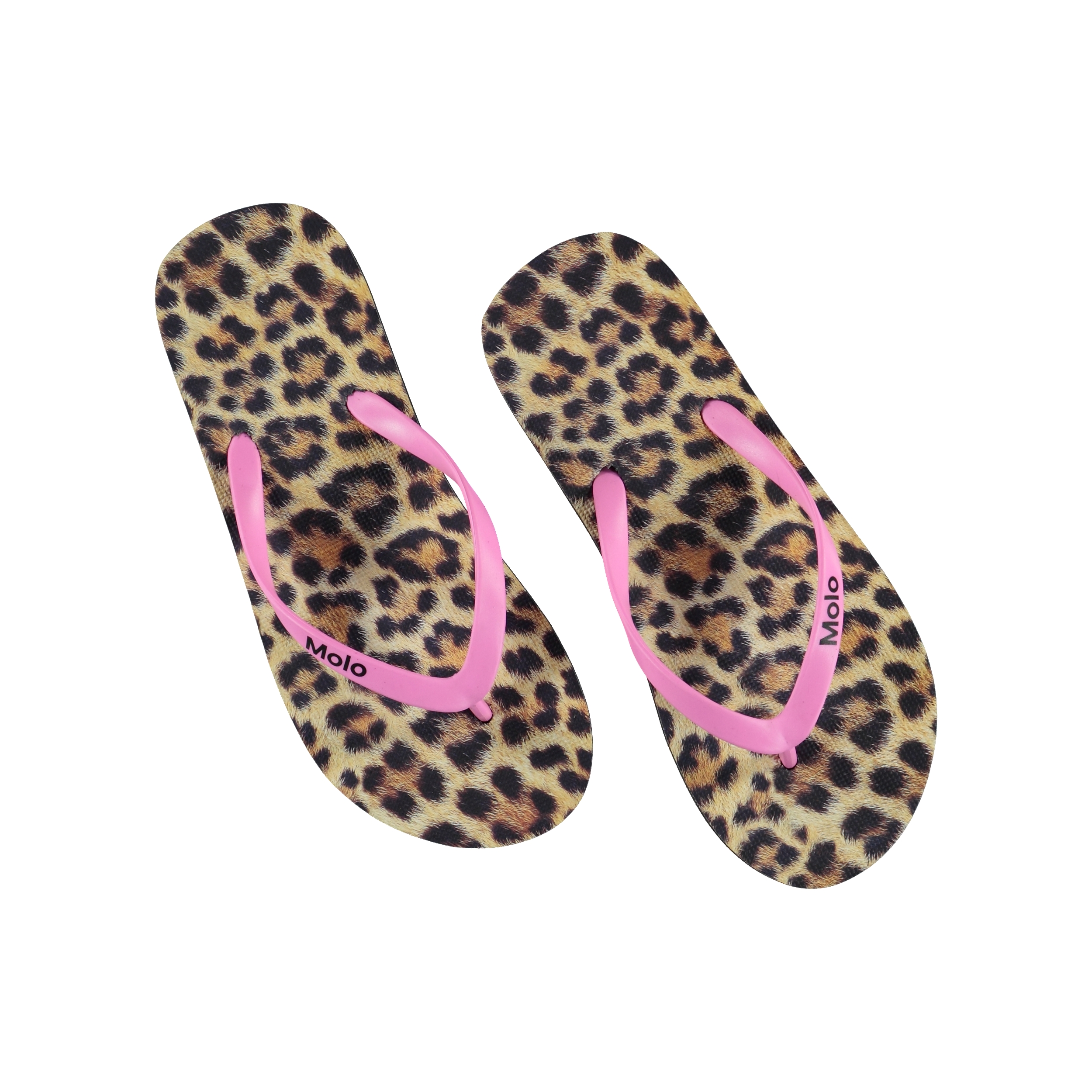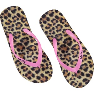 Molo's Zeppo sandals are a must to keep your toes cool in the summer heat. These flip flops are in a leopard print with pink straps.
