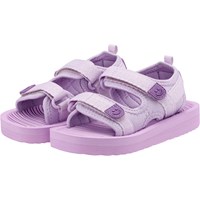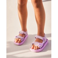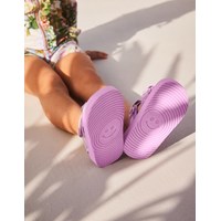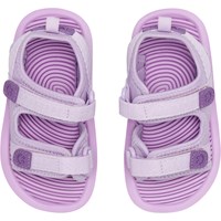 Lightweight, sporty sandals in purple with a soft foam sole. The sandals have comfortable neoprene panels that keep the foot in place. They have practical velcro closures at the ankles and over the foot to make them easy to put on.