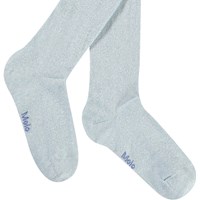 Light blue fine-knit glitter tights in cotton. These tights have an elastic waistband that ensures a perfect fit.