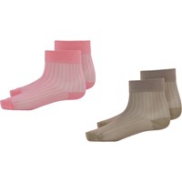 Two pair lightweight ankle socks. One pair is pink and the other light brown.