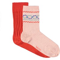 2-pack finely knitted socks in cotton with a ribbed cuff for a better fit. The pack includes one pair of red socks and one pair of rose.