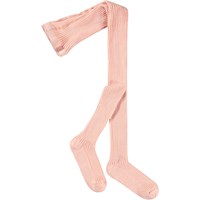Pink fine-knitted ribbed tights made of cotton. Elastic at the waist ensures a comfortable fit.