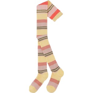 Lovely striped tights in light yellow, coral, pink and light green with rib and with an elastic waist for a comfortable fit.