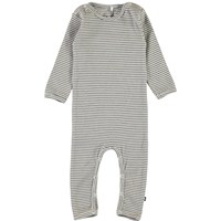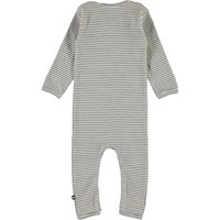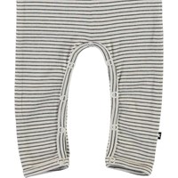 Fenez is a striped rib baby bodysuit in white and brown. It has easy snap closure at the neck and crotch.