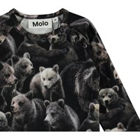 Field is a long sleeve baby bodysuit with a print of a lot of sweet bears. It has easy snap closure at the neck and crotch.
