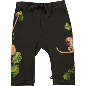Sabb is a pair of roomy baby trousers with the print of mice and branches on the sides of the legs. They have ties at the waist.