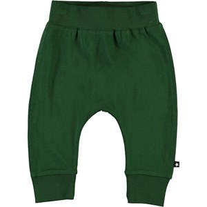 Sammy is a pair of roomy, green baby trousers in a sweatpant look with wide, elastic rib at the waist and legs.