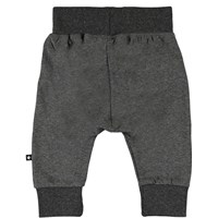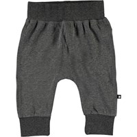 Sammy is a pair of dark grey trousers. They have wide elastic rib at the waist and legs as well as visible stitching on the front for a sweatpant look.