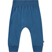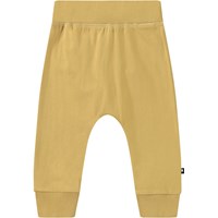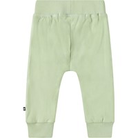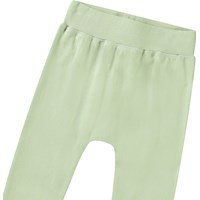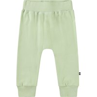 Pale green pants in organic cotton jersey for the little ones. The pants have a wide elastic ribbed waistband and leg cuffs, as well as visible stitching at the front, giving them a pants look. They are soft to wear and provide plenty of room for movement.