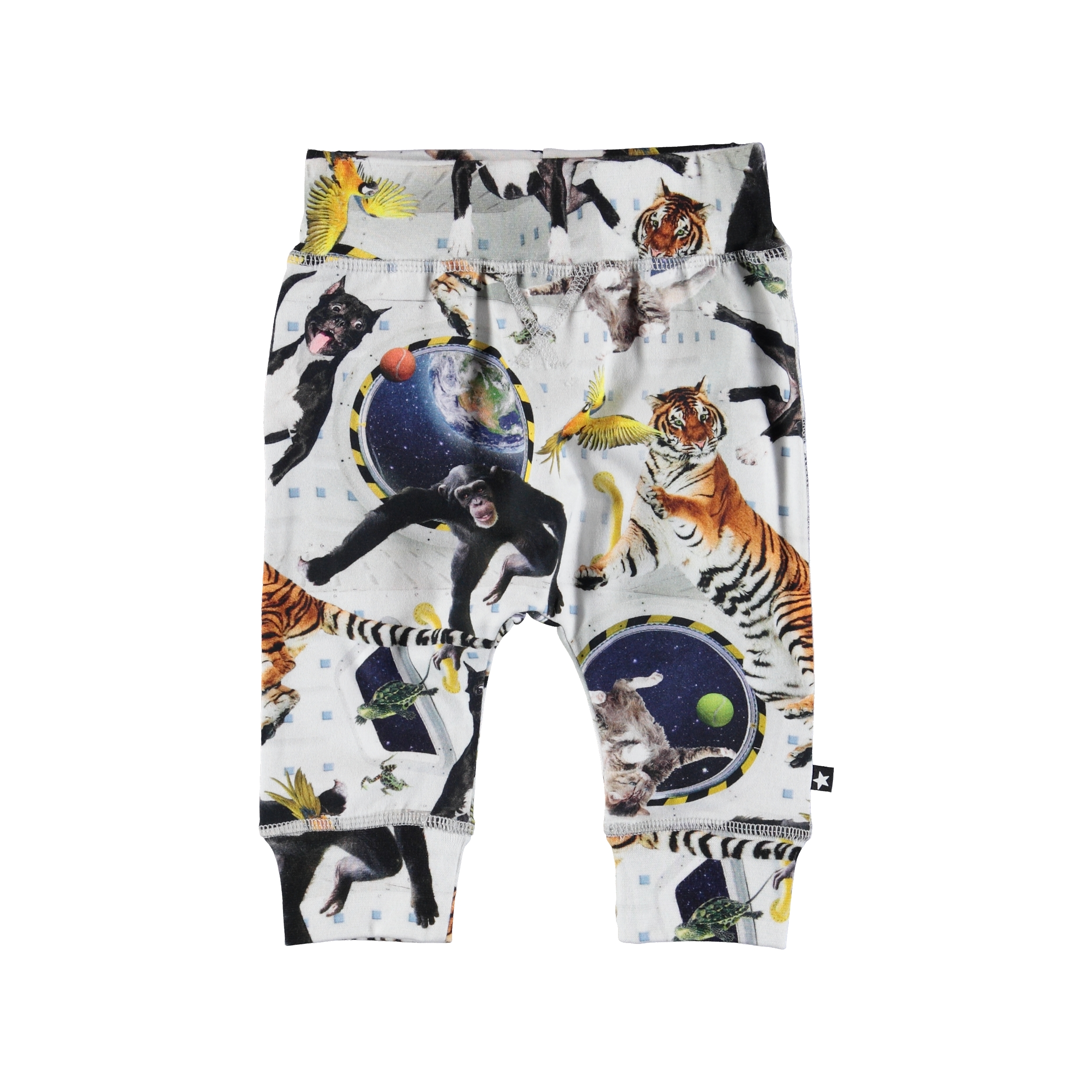 It is hard to stay grounded when the animals have taken a trip into space on the 'No Gravity' print on the Sammy baby sweatpants. They have a wide elastic rib at the waist and legs.
