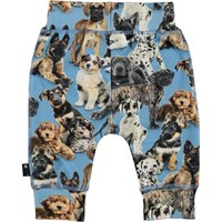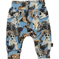Sammy is a pair of light blue baby trousers in a sweet print of adorable puppies. Wear them with a matching top. They have wide elastic rib at the waist and the legs and visible stitching on the front that gives them a sweatpants look.