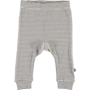 Seb is a pair of striped baby trousers in brown and white with narrow legs and rib. They have an elastic waist for a comfortable fit.