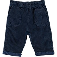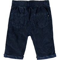 Seve is a pair of baby trousers in dark blue corduroy. It has an elastic waist and large front pockets.