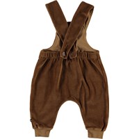 Snurre is a pair of baby dungarees in brown velour with a face sewn on the front, which makes it look like a rabbit.