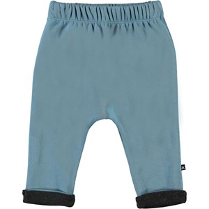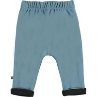 Soyo is a pair of light blue baby sweatpants with an elastic waist and roll up at the legs. They have a roomy fit.