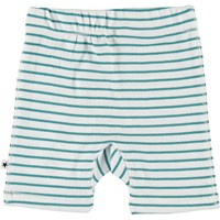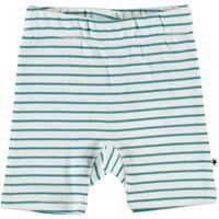 Sebbo is a pair of baby shorts with white and green stripes. The shorts have a comfortable elastic waist.