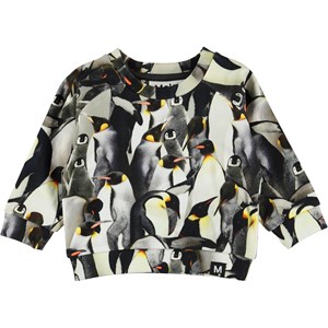 Dag is a baby sweatshirt with the 'Penguins Galore' print. Dag has rib at the neck, sleeves and bottom.