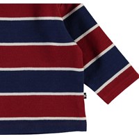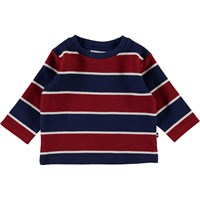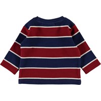 Diorian is a blue and red striped baby top with narrow white stripes.