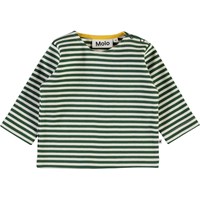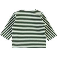 Dosti is a green and white striped baby top with long sleeves. Wear it with matching trousers.