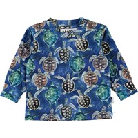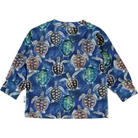 Eloy is a blue baby top with a turtle print. Eloy has easy snap closure on one shoulder.