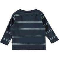 Elvo is a blue striped baby top with long sleeves.
