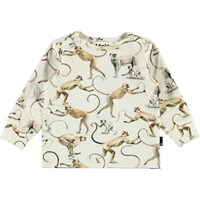 Eloy is a sweet, cream coloured baby top in organic cotton with a print of monkeys that are holding each other's tails. Can you spot the heart?