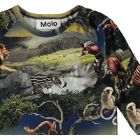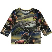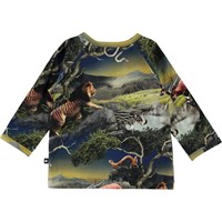 Ewald is a baby top with a print of futuristic animals. The top has raglan sleeves and a button closure.