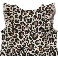 Jumpsuit in soft organic cotton for the little ones. The jumpsuit is sleeveless and has a cute ruffle edge at the front and back. The button fastening at the neck and between the legs makes it easy to put on and take off. It has an all-over jaguar print.