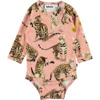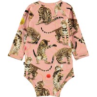 Meet the leopard's little sister, the Bengal cat, on the 'Wannabe Leopard' print, which shows a playful cat throwing around balls of yarn on the Fonda baby bodysuit. Fonda has a snap at the collar and an easy snap closure at the crotch.