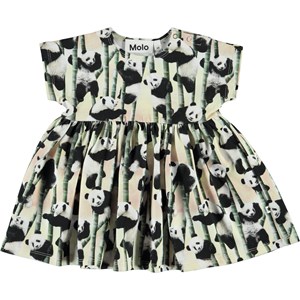 Channi is a baby dress with a print of panda bears with their favourite food: bamboo. Channi has a wide fit and an easy snap closure at the shoulders.