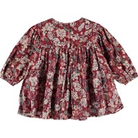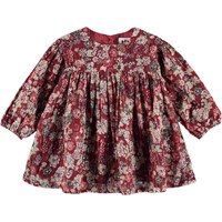 Colore is a dark red baby dress with a floral print and narrow silver stripes.
