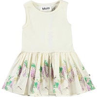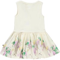 Cordelia is a white baby dress in a rib top and a skirt in a wisteria print.