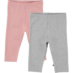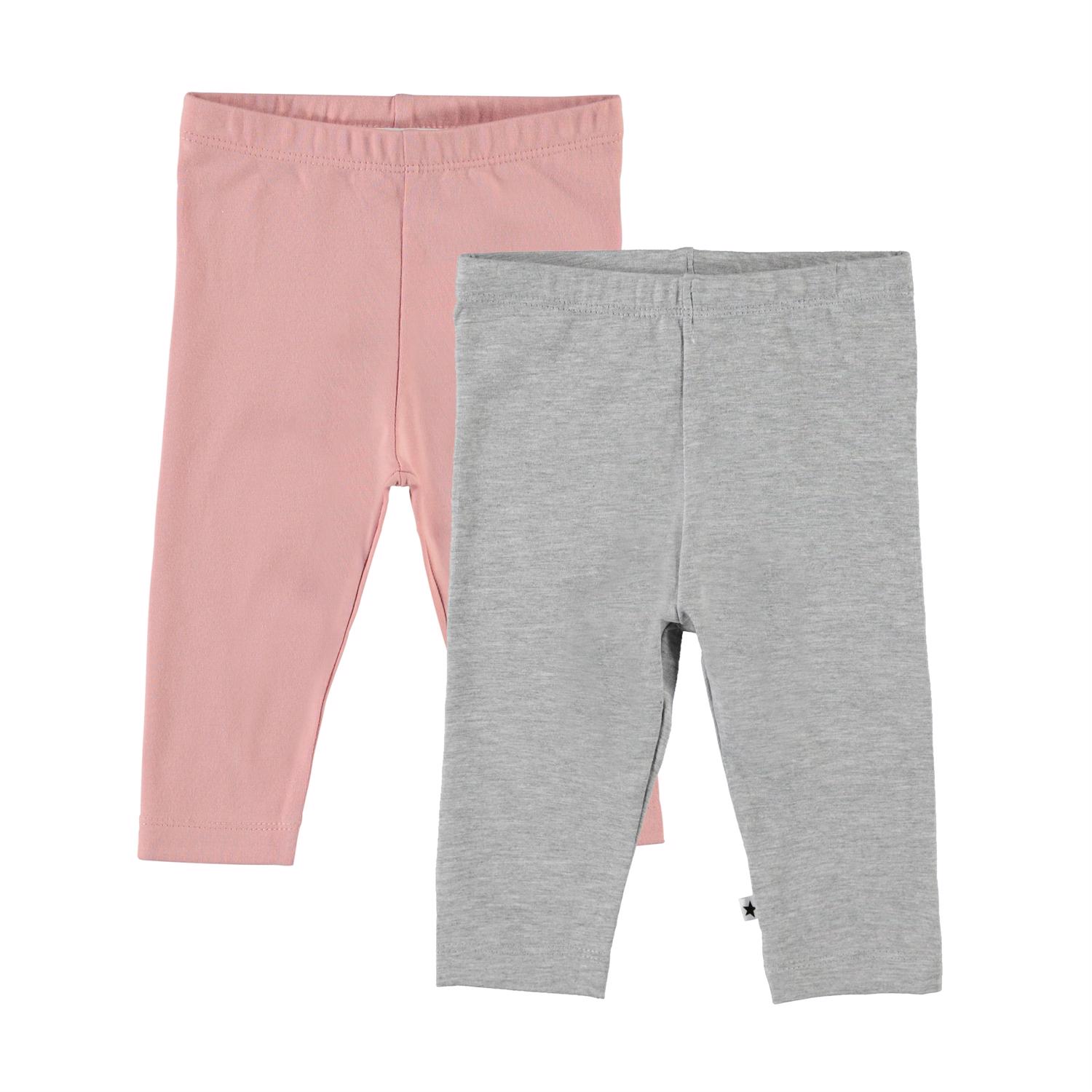Classic baby leggings in a 2-pack, one in rose and the other in grey. The elastic waist and soft fabric ensure a good fit.