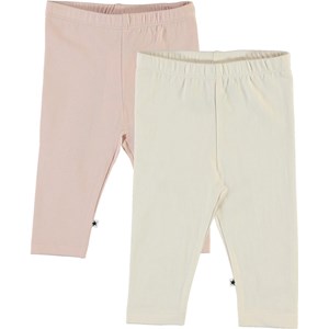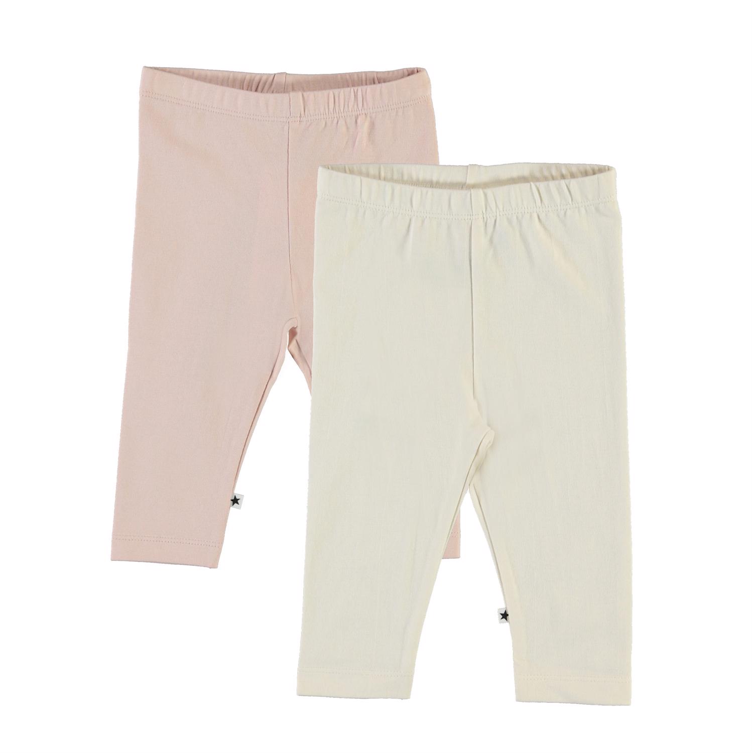 Classic baby leggings in a 2-pack with a mother of pearl pair and a rose coloured pair. The elastic waist and the soft fabric ensure a good fit.