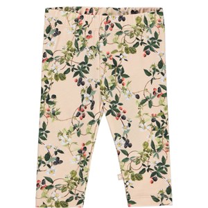 Classic baby leggings in a rose colour with a print of blackberry vines. The elastic waist and soft fabric ensure a good fit.