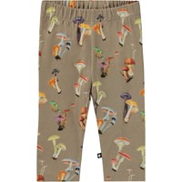 Beige baby leggings with a print with small mushrooms. The leggings are in 100% cotton and have an elastic waist for the best possible fit.