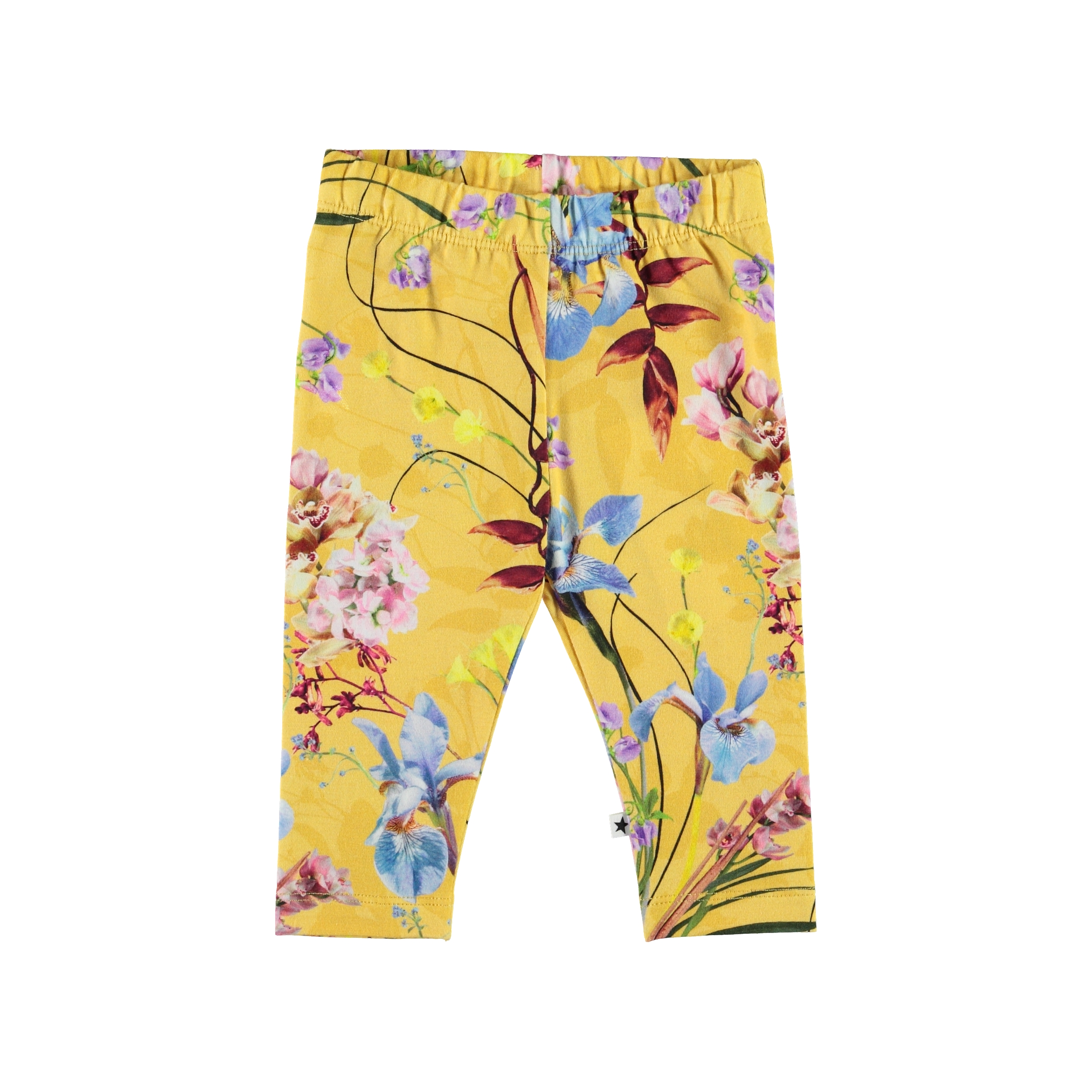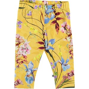 Stefanie is a pair of yellow baby leggings with a floral print. The elastic waist and soft fabric ensure a good fit.