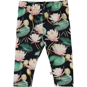Stefanie is a pair of baby leggings with a print of water lilies. The elastic waist and soft fabric ensure a good fit.