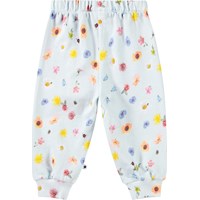 Soft pants in organic cotton for the little ones. The pants have an elasticated waist with a drawstring and ribbed cuffs at the ankles. They are easy to put on and take off, providing plenty of room for movement. This style has an unbrushed interior, making it pleasantly cool on a hot day. The pants are light blue with a floral print. Pair with the matching sweatshirt for a complete outfit.