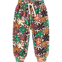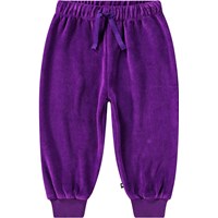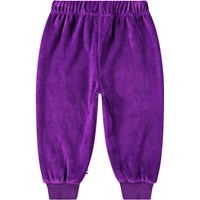 Purple sweatpants for the little ones made of organic cotton velour. They have elastic and a drawstring at the waist and ribbed cuffs at the legs. They are easy to put on and take off and plenty of room for movement.