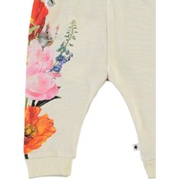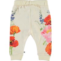 Susanne is a pair of beige baby trousers with a print of animals and flowers at the side of the legs. Simone has an elastic waist and rib at the legs to ensure a comfortable fit.