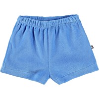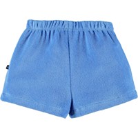 Blue terry baby shorts. The elastic waist ensures a good fit.