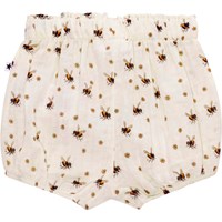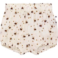 Off-white bloomers for small children. They have elastic at the waist and at the legs, whichn makes them roomy enough for a nappy. The bloomers are in a sweet, all over print of small flowers and bumblebees.
