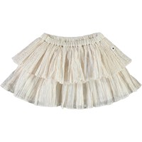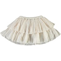 Bianca is a white baby skirt with narrow metallic stripes. The double-layer skirt has an elastic waist.